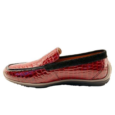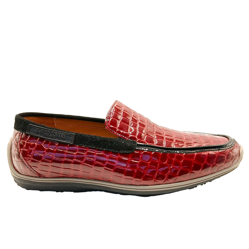 Mens Genuine Patent Leather Croc Print Slip On Mocassin With Rubber Outsole.