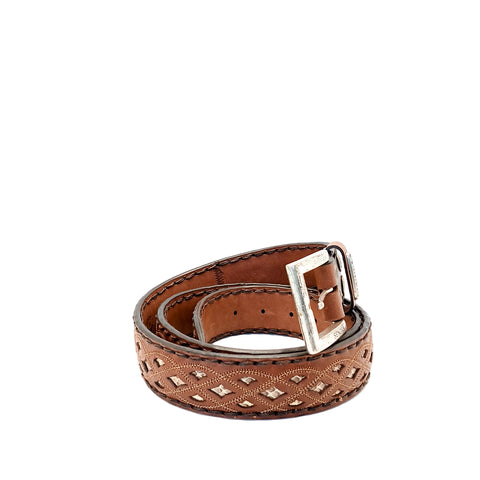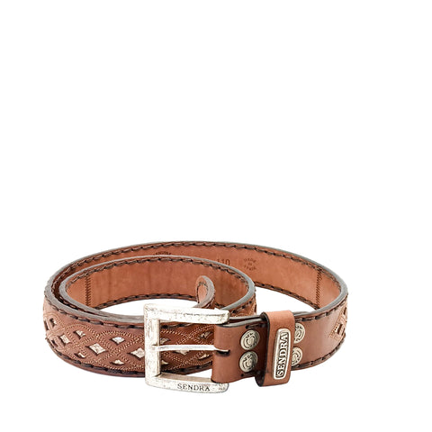 Handmade And Stiched Genuine Leather Western Belt With Snake Skin Detailing. Made In Spain .