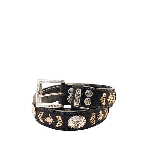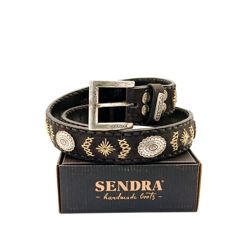 Handmade And Stiched Genuine Leather Western Belt With Buckle And Embroidery Trim. Made In Spain.